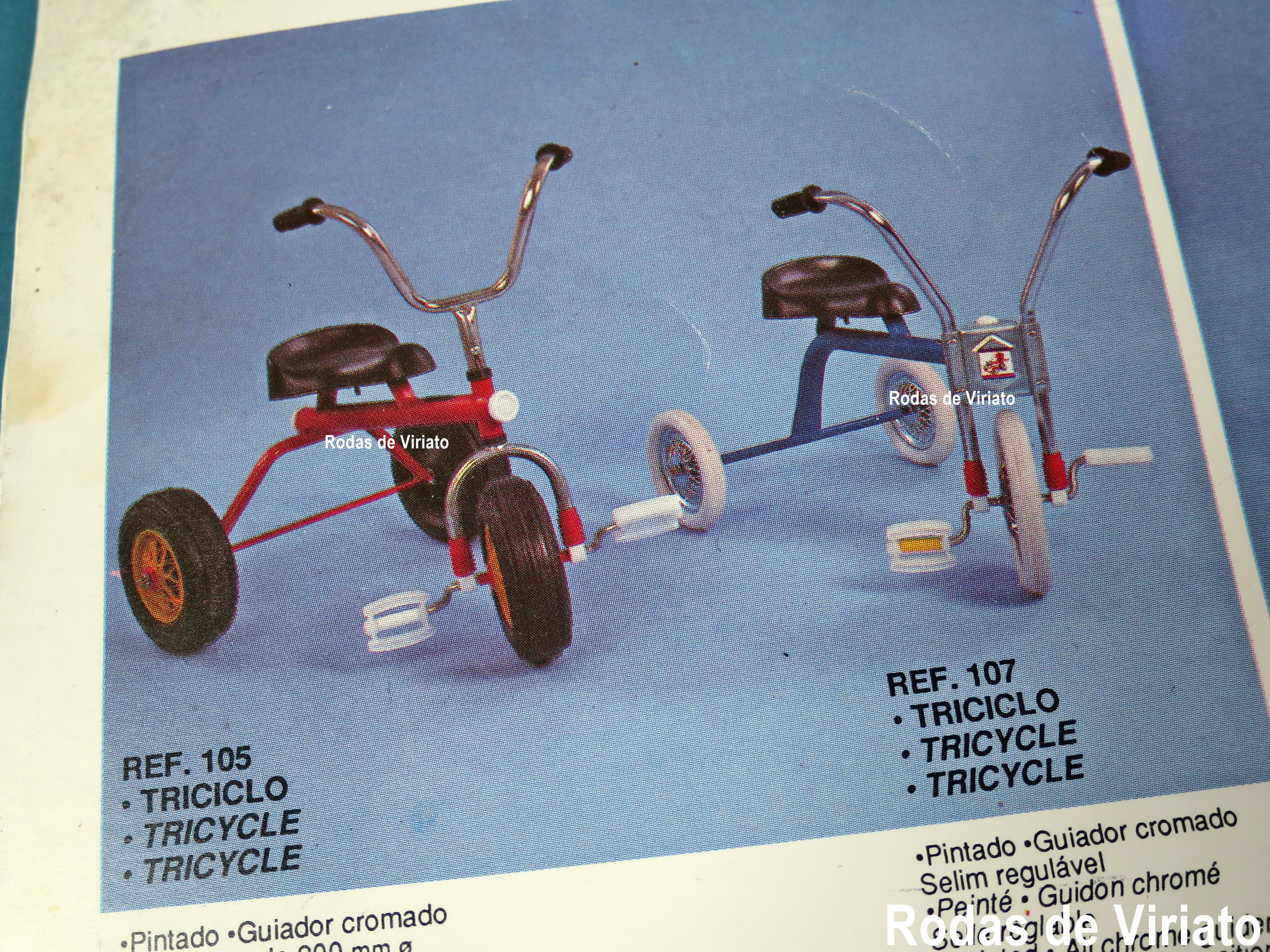 Tinha o guiador e forqueta cromados, com punhos em plástico preto e pedais em plástico branco. O selim era regulável e na traseira vemos que a estrutura do quadro era diferente do modelo com a referência 107.