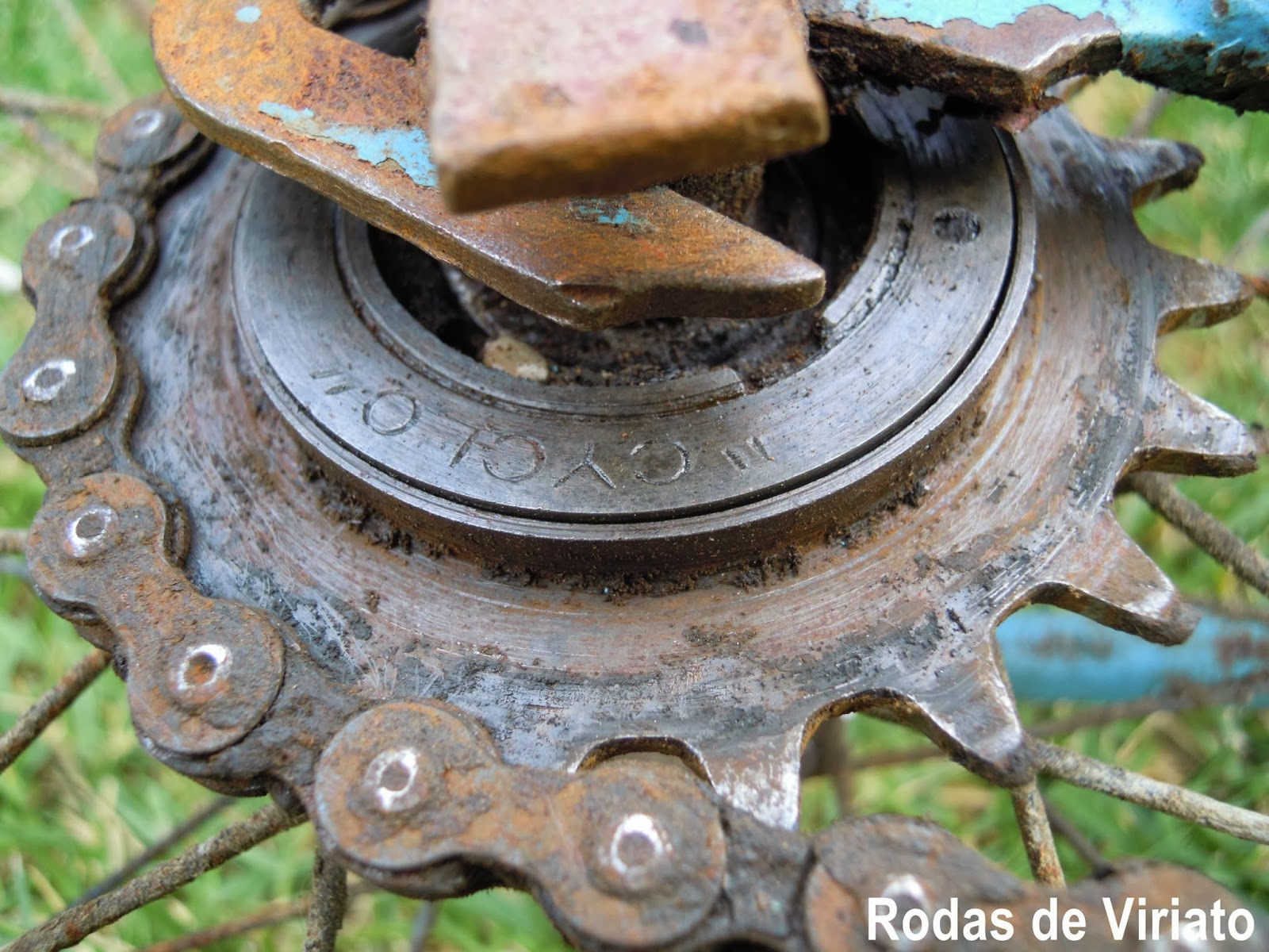 A bicicleta esteve equipada com bomba de ar, como se pode ver pelo elemento que a segurava...