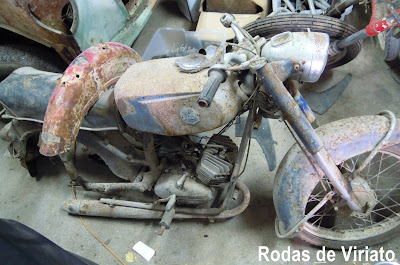 Falta-lhe a roda de trás, bem como o farolim, o carburador e pouco mais...