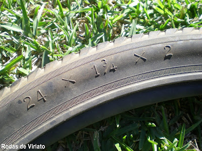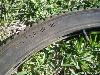 O estado é o que se vê nas imagens, destacando-se o pneu da roda da frente, de piso listado, de marca Zandi.